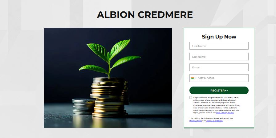 To begin, navigate to the official Albion Credmere website. Right on the homepage, you will find a straightforward registration form. You will be required to input basic personal information: