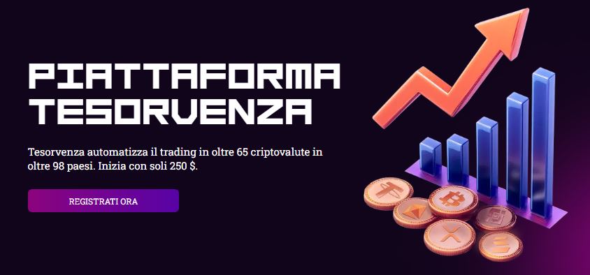 Con oltre 34 milioni di utenti verificati a livello globale, un volume di trading che supera i 400 milioni di dollari e la disponibilità in oltre 98 Paesi, Tesorvenza si è affermata come un leader nel settore del trading automatizzato (FinTech). Non offre solo criptovalute, ma apre le porte anche a Forex, materie prime, azioni e Contratti per Differenza (CFD).
